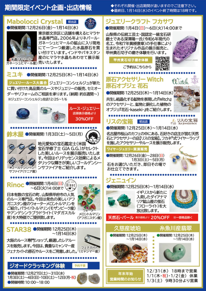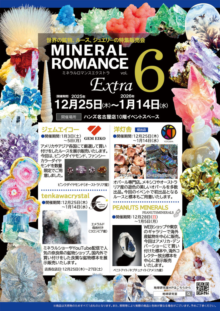 12月25日(木)より、世界の鉱物、ルース、ジュエリーの特集販売会、MINERAL ROMANCE Extra vol.6を開催いたします。